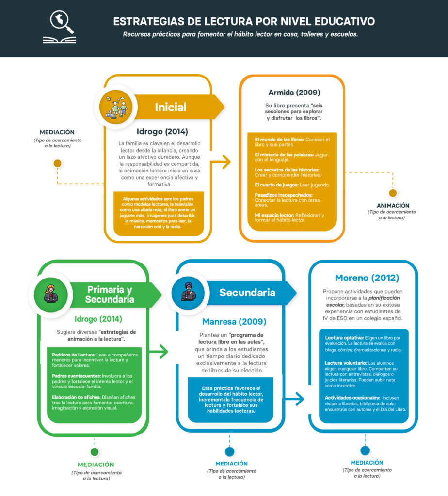 Es cierto que es importante reflexionar acerca de la importancia de priorizar la lectura como práctica cotidiana, pero aún más relevante es poder acercar el cómo hacer para llegar a los lectores. Por ello, presento a continuación una recopilación de estrategias y actividades que pueden ser utilizadas y puestas en práctica ya sea en casa, talleres, clubes de lectura o en el colegio en los diferentes niveles educativos.